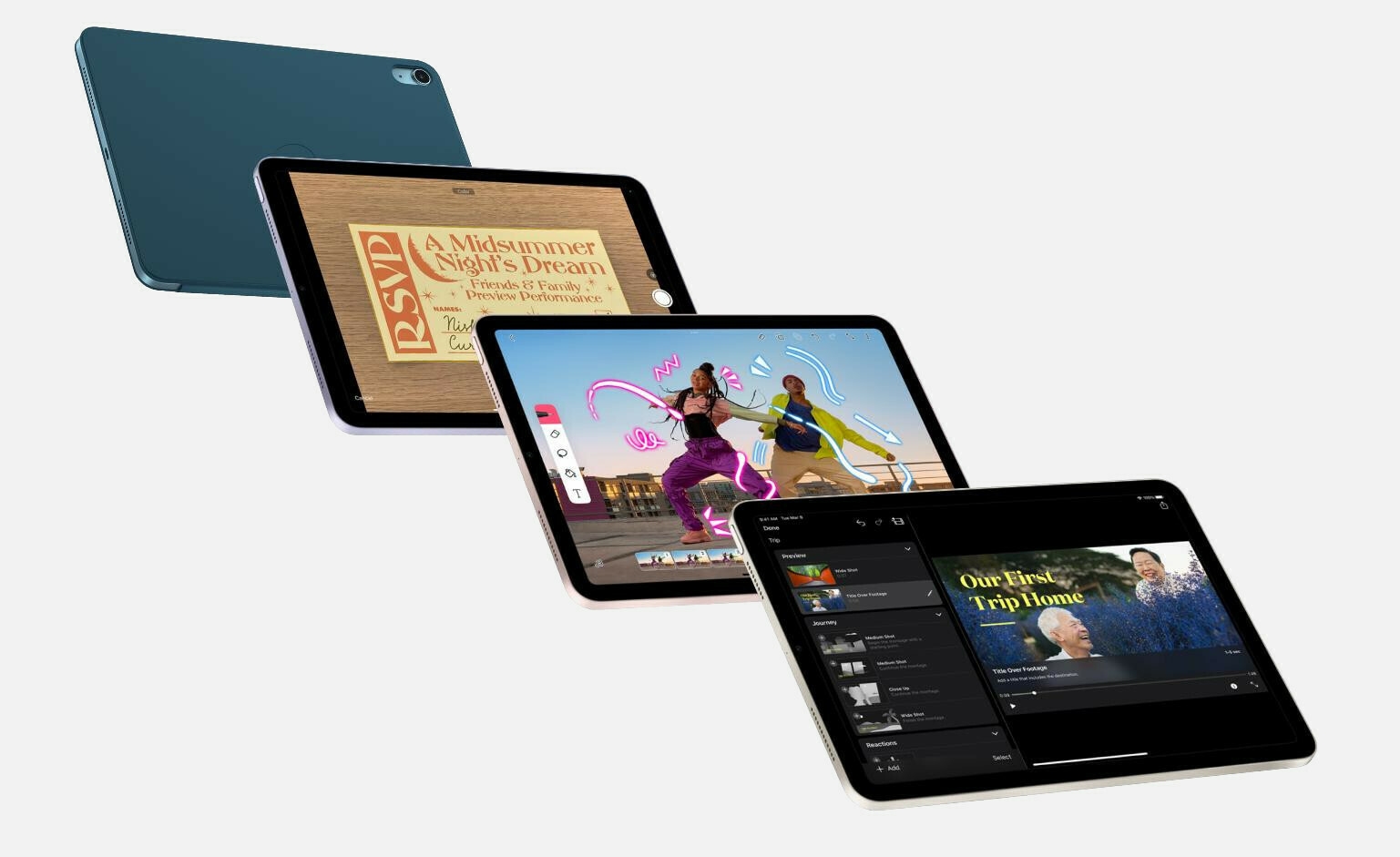 Πολύχρωμο, επανασχεδιασμένο και πιο ευέλικτο από ποτέ. Με οθόνη, απ’ άκρη σ’ άκρη Liquid Retina 10,9 ιντσών και τέσσερα υπέροχα χρώματα. Το iPad προσφέρει έναν μοναδικό τρόπο για να δημιουργείς, να παραμένεις συνδεδεμένος και να είσαι αποτελεσματικός σε ό,τι κάνεις.